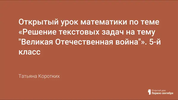 Урок проверяет степень усвоения материала по теме, умения применять теоретический материал для решения задач, полученный за весь учебный год. Кроме того, через урок красной нитью проходит связь с историей Великой Отечественной войны.