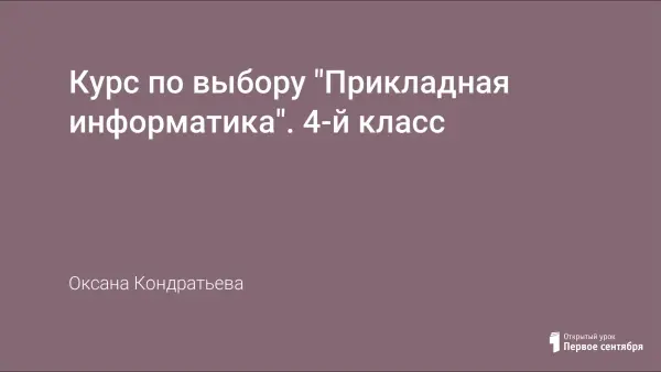 Данный курс по выбору имеет предварительный, краткий круг знаний по прикладной информатике. Приводится планирование курса в расчете на 68 часов.