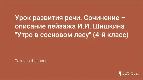 Представлен сценарий урока русского языка в 4-м классе, на котором дети, описывая словами пейзаж И.И. Шишкина "Утро в сосновом лесу", совершенствуют свою речь, развивают познавательно-творческие способности.