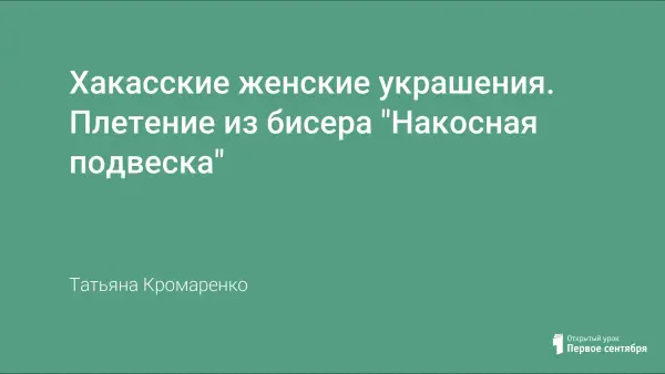 Национальный костюм впитывает в себя оттенки современности, приобретает то новое, что позволяет молодому поколению проявлять свое творчество и фантазию. Занятие разработано для знакомства с культурой хакасского народа на уроках декоративно-прикладного искусства в учреждениях дополнительного образования, уроках технологии. Дети выполняют подвески для волос из бисера.