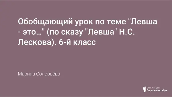 Цель урока - попытаться продолжить тему урока "Левша - это...", основываясь на осмысленном чтении произведения и глубоком разговоре о прочитанном.