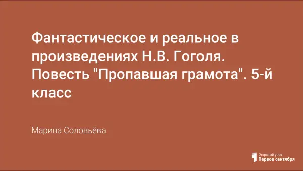 На уроках литературы учащиеся знакомятся с произведением Н.В. Гоголя "Пропавшая грамота". Урок способствовал развитию у учащихся фантазии, воображения, речи, имел большое значение в нравственном мировоззрении, в укреплении дружеских отношений в классе, сплочении коллектива. Немаловажными являются задачи, решаемые во время игры: желание выступить в какой-либо роли, добровольно подчиняясь игровым правилам.