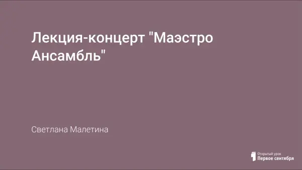 Основная цель лекции-концерта – познакомить детей с понятием «ансамбль», связать узкое музыкальное значение слова с окружающим миром. В ходе мероприятия подробно разбираются разновидности ансамблей по составу и количеству участников. Дети являются активными участниками вечера как в качестве зрителей, так и в качестве исполнителей в различных составах ансамблей.