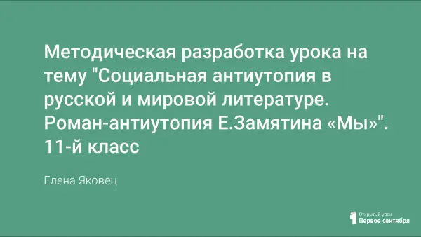 На уроке, анализируя текст романа, учащиеся выявляют позицию автора. В процессе обсуждения формируют свой взгляд на проблему. Сравнивая произведения отечественных и зарубежных авторов разных исторических эпох, углубляют свои познания антиутопии как жанра литературы.