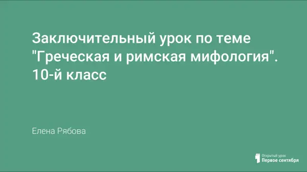 Данный урок является заключительным уроком по теме "Греческая и римская мифология" в 10-м классе школ с углубленным изучением английского языка, а также уроком-презентацией.