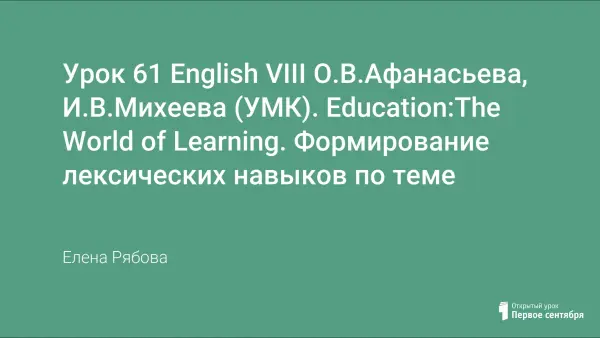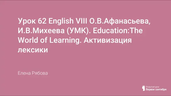 Урок-презентация для 8-го класса по УМК О.В. Афанасьевой, И.В. Михеевой (English VIII). Education: The World of Learning. Цель урока: формирование новых лексических единиц по указанной теме.