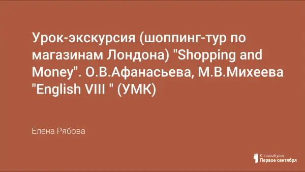 Урок-экскурсия для 8-го класса по УМК О.В. Афанасьевой, И.В. Михеевой (English VIII) на формирование навыков устной речи по теме; развитие навыков поискового и детального чтения на основе текста "Shopping: the world of money" знакомит учащихся со знаменитыми торговыми марками Великобритании.