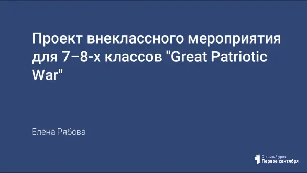 Проект внеклассного мероприятия для 7–8-х классов в форме дискуссии на иностранном языке, затрагивающей тему 70-летия победы в Великой Отечественной войне. Цель: поощрить интерес учащихся к историческому наследию страны и города, а также побудить их к самостоятельному анализу и синтезу информации; развить умение высказывать собственное мнение по вопросу, грамотно вести дискуссию, участвовать в коллективных обсуждениях.