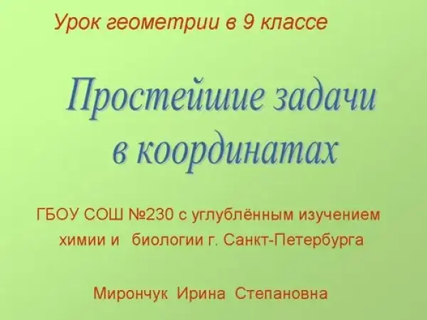 Цель урока: рассмотреть простейшие задачи в координатах и показать, как они применяются при решении задач.