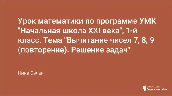 План-конспект урока математики является примером реализации личностно-ориентированного подхода к обучению младших школьников. Занятие проводится с целью организовать деятельность учащихся по повторению вычитания чисел 7, 8, 9; создать условия для закрепления умений решать задачи; содействовать формированию прочных вычислительных навыков, интеллектуальной культуры, развитию патриотических чувств.