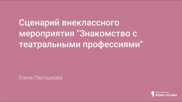Цель мероприятия: знакомство с театральными профессиями. Форма проведения - концерт - беседа с элементами игры. Занятие разработано для учащихся начальных классов общеобразовательных школ.