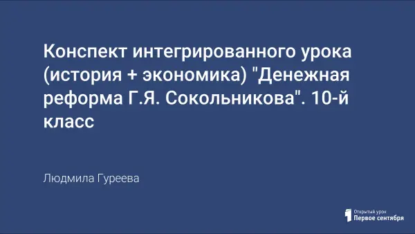 В представленном уроке рассматривается не только история денежного обращения России, но и прослеживается связь с экономикой. Денежная реформа - ее причины, цели и итоги – это факт экономических изменений в нашей стране. Реформа Г.Я. Сокольникова, проходившая в три этапа, смогла изменить состояние российской экономики начала ХХ века.