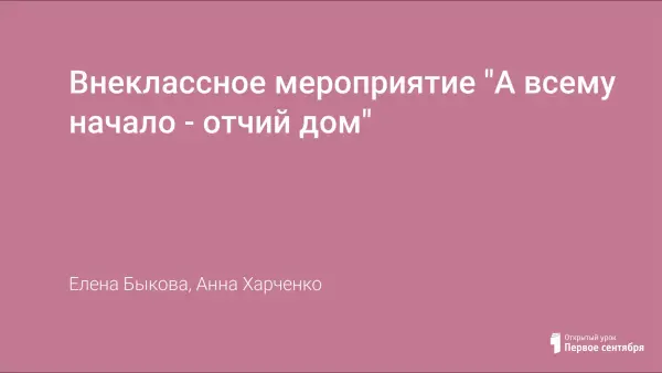 Внеклассное мероприятие "А всему начало - отчий дом"