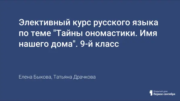 Элективный курс русского языка по теме "Тайны ономастики. Имя нашего дома". 9-й класс