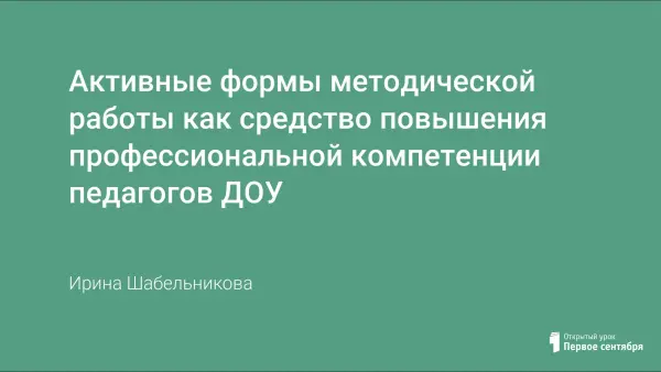 В статье говорится об актуальности проблемы подготовки высококвалифицированного воспитателя дошкольного образовательного учреждения на современном этапе и использовании активных форм методической работы в дошкольном учреждении, способствующему профессиональному совершенствованию педагогов, повышению качества образовательной работы, а также развитию учреждения в целом.
