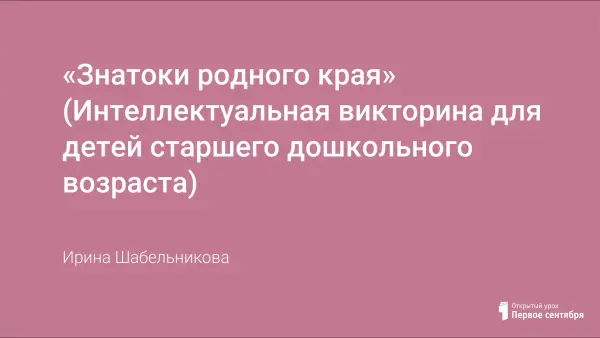 Цель викторины: развитие у детей дошкольного возраста интереса и расширения представлений о родном крае, развития системы нравственно-патриотического воспитания.
