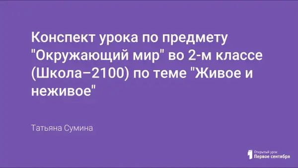 Целью данного урока было дать представление о живых организмах, неживых предметах и предметах, сделанных людьми. На уроке дети самостоятельно учатся разделять неживые предметы от живых организмов и предметов, сделанных людьми. Они сами становятся участниками урока.