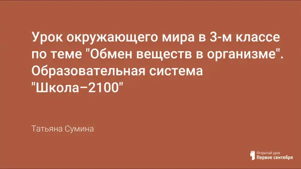 Урок окружающего мира в 3-м классе с применением информационных технологий. Основной задачей урока является умение объяснять значение обмена веществ в жизни живых организмов. Детям предоставляется возможность самим открыть новые знания, опираясь на собственный жизненный опыт.