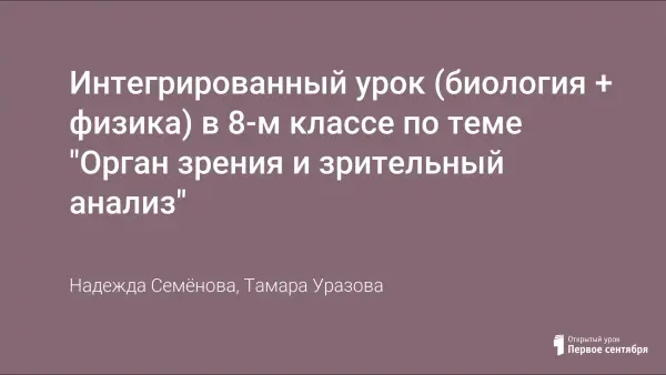 Интегрированный урок (биология + физика) в 8-м классе по теме "Орган зрения и зрительный анализ"