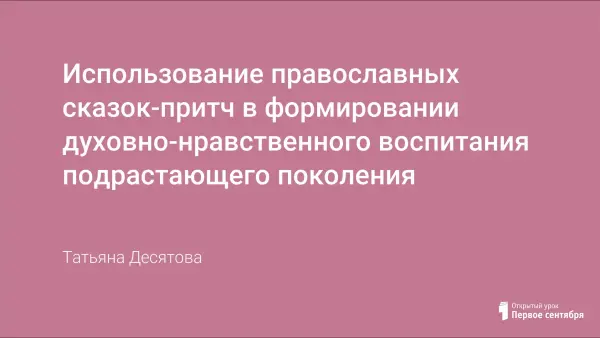 В данной работе затрагивается проблема воспитания нравственных качеств у современных детей в условиях отсутствия законодательного православного образования и отрицательного влияния окружающей жизненной ситуации. Предлагается решение этой проблемы посредством использования православных сказок-притч в воспитании детей.