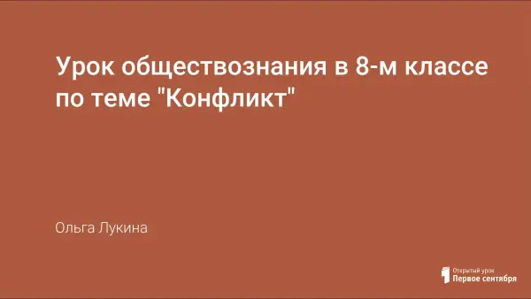 Конспект открытого урока по обществознанию из раздела "Социальная сфера". На уроке рассматривается такой важный вопрос для учащихся 8-9-х классов, как "Конфликт". Используются различные формы работы: по рядам; в группах; погружения в себя; работа с документами; обмен и аргументация мнений. Акцентируются внимание на негативности конфликта. И что особенно важно – бесперспективности решения проблем с помощью алкоголя, курения, наркотиков.