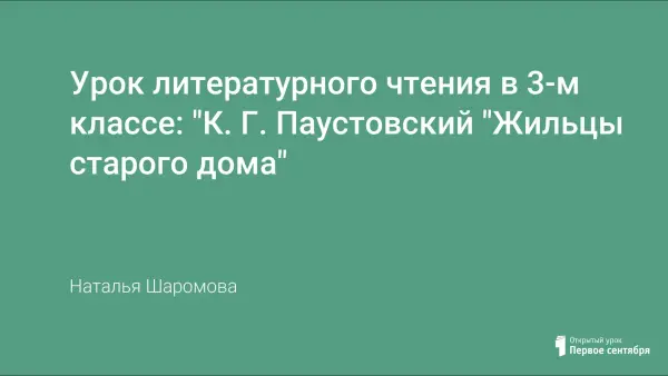 Это второй урок по произведению К.Г. Паустовского «Жильцы старого дома». Умение анализировать художественное произведение – умение творческое, предполагающее способность читателя найти решение в том случае, когда заранее неизвестен набор правил и операций, последовательное осуществление которых приведет к цели. Овладение этим умением происходит в процессе творческой деятельности учащихся, в процессе чтения и анализа художественного произведения.