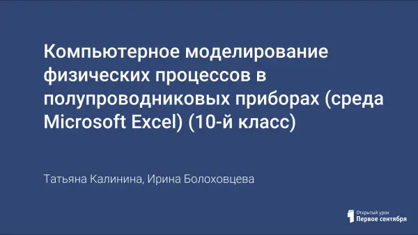 Компьютерное моделирование физических процессов в полупроводниковых приборах (среда Microsoft Excel) (10-й класс)