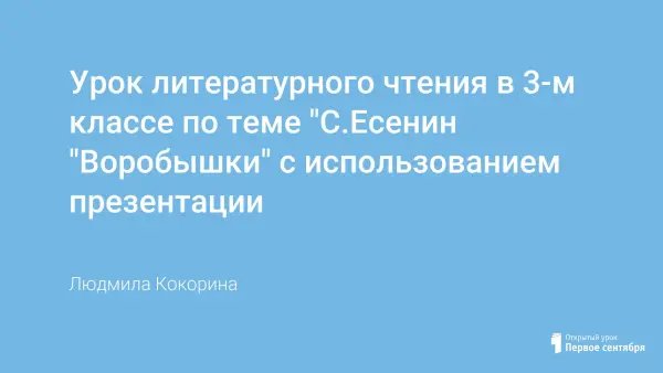 Предлагаемый урок с нетрадиционной подачей материала помогает организовать различные виды учебной деятельности при изучении стихотворения С.Есенина «Воробышки», работу над языковыми средствами, повышает познавательную активность учащихся, способствует воспитанию любви к Родине.