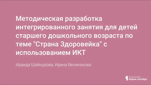 Методическая разработка интегрированного занятия для детей старшего дошкольного возраста по теме "Страна Здоровейка" с использованием ИКТ