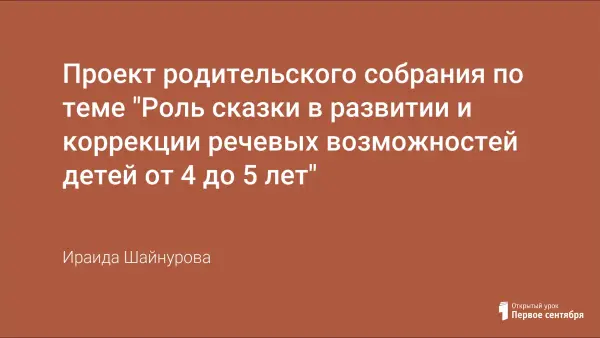 Проект родительского собрания способствует повышению педагогической компетенции родителей по проблеме речевого развития детей от 4-х до 5-ти лет и вырабатывает единые подходы в воспитании и развитии ребёнка.