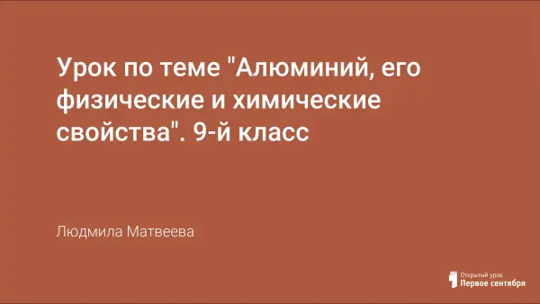 Целью занятия является формирование у учащихся представлений о физических и химических свойствах алюминия, знакомство с областями применения данного металла.