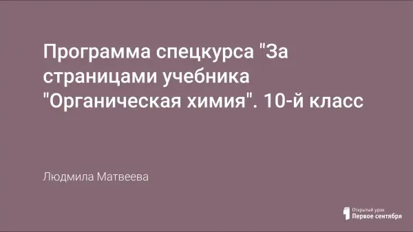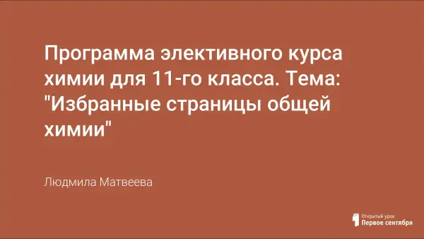 В статье представлена программа спецкурса, нацеленного на коррекцию и расширение знаний учащихся, обучение решению задач и упражнений, выработку целостного взгляда на химию, усвоение материала повышенного уровня сложности. Спецкурс предназначен для изучающих химию на профильном уровне, представлен учебно-тематический план и краткое содержание программы.