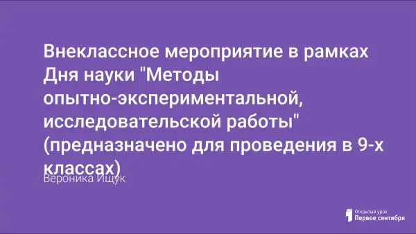 Цель мероприятия: познакомить учащихся с методами опытно-экспериментальной, исследовательской работы; научить использовать методы опытно-экспериментальной исследовательской работы на практике.