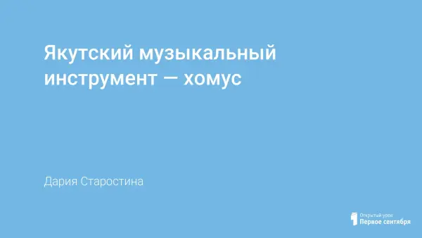 На уроке учащиеся знакомятся с якутским музыкальным инструментом хомус и распространением хомуса в разных странах. Пробуют играть на инструменте. На уроке используются слайды, запись импровизации на хомусе, это даст детям возможность развивать наглядно-слуховое мышление.