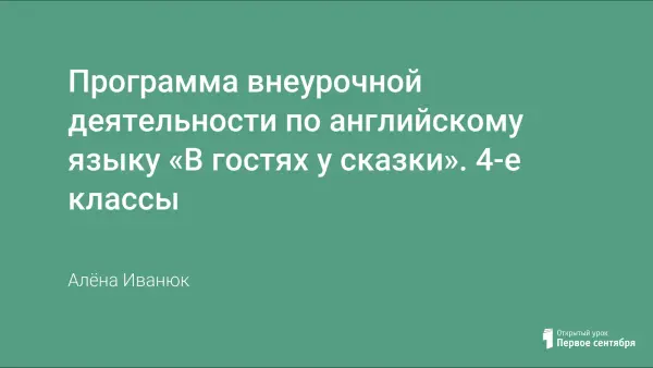 Программа внеурочной деятельности «В гостях у сказки» обеспечивает развитие интеллектуальных общеучебных умений, творческих способностей учащихся, необходимых для дальнейшей самореализации и формирования личности ребенка. Проект программы разработан в формате литературно-драматического театра. Программа учитывает особенности ступени образования, для которой он разработан: курс предназначен для учащихся 4-х классов и рассчитан на 34 часа, 1 час в неделю.
