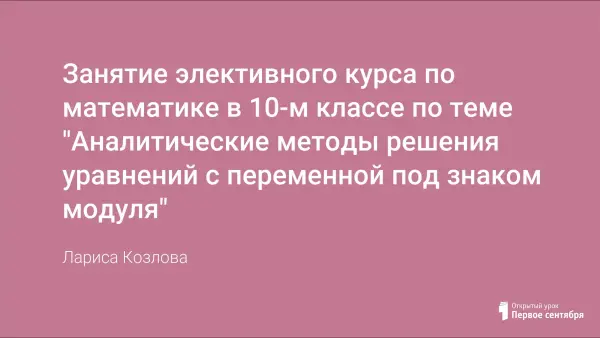 Данное занятие элективного курса формирует умения решать уравнения, содержащую переменную под знаком модуля, используя аналитические методы. Углубляет знания по теории и алгоритмам решения уравнений, содержащих переменную под знаком модуля самой разнообразной структуры. Готовит учащихся к ЕГЭ по математике.