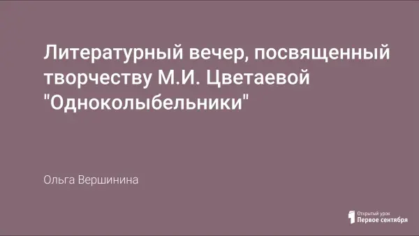 Литературный вечер, посвященный 116-й годовщине со дня рождения М.И. Цветаевой, знакомит студентов с жизнью семьи Цветаевых, с творчеством Марины Цветаевой. При подготовке к вечеру студентам предложено выучить (по своему выбору) стихи Марины Цветаевой.