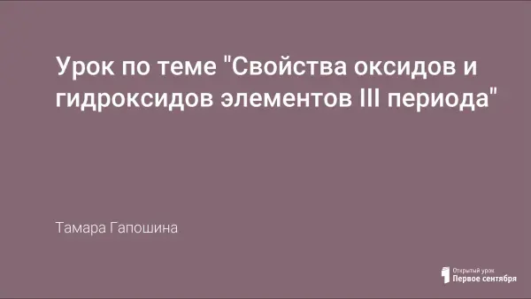 Это третий урок в разделе «Элементы III периода периодической системы химических элементов Д.И. Менделеева». Ко времени его проведения учащиеся ознакомлены с составом и свойствами основных классов неорганических соединений с позиции теории электролитической диссоциации, с видами химической связи, имеют понятие об относительной электроотрицательности элементов.