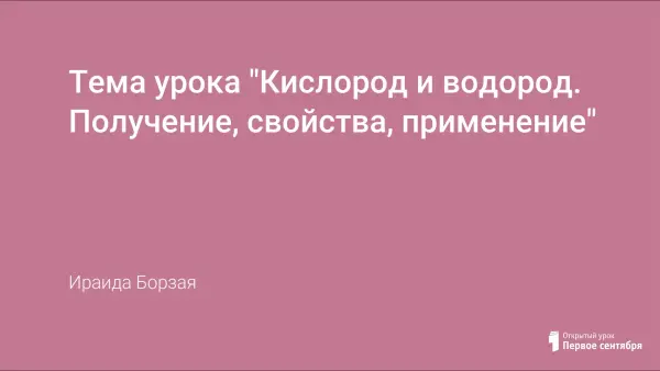 Предлагаемый урок проводится с целью обобщения и систематизации знаний учащихся о кислороде и водороде. Использование компьютерной презентации позволяет более наглядно и быстро преподнести учащимся большой объем информации. В ходе проведения урока используется работа в виртуальной лаборатории, проводятся демонстрационные эксперименты.