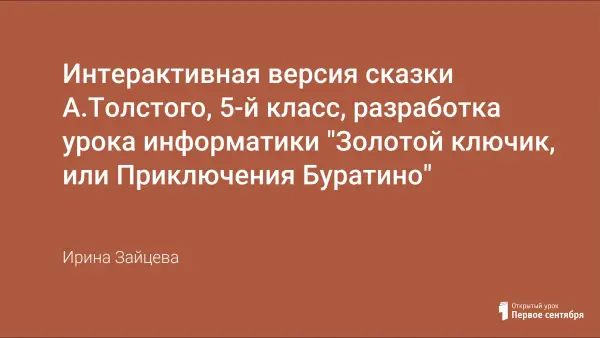 В форме интерактивной сказки-соревнования проверяется качество и прочность усвоения учащимися материала, изученного за четверть. Школьники становятся непосредственными участниками сказки - помогают Буратино выпутываться из трудных ситуаций, в которые он постоянно попадает. В конце путешествия заслуженная награда — золотой ключик от дверей в Мир Знаний.
