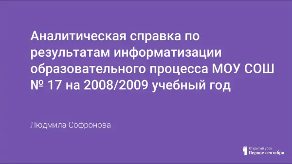 Аналитическая справка по результатам информатизации образовательного процесса МОУ СОШ № 17 на 2008/2009 учебный год