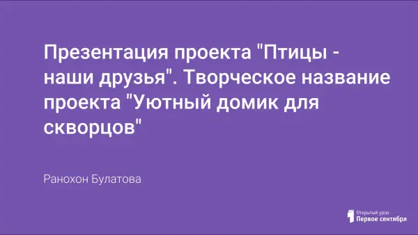 Проект ориентирован на создание в школе системы сотрудничества между школой и семьями учеников, через систематическую работу по формированию трудовых навыков учащихся с привлечением родителей. Решение этой проблемы планируется через вовлечение учащихся и родителей в совместную трудовую деятельность по изготовлению скворечников; пропаганды информации о пользе птиц - защитников садов и огородов.