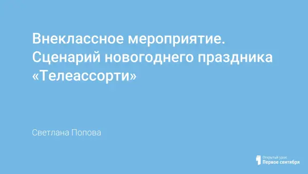 Внеклассное мероприятие – сценарий новогоднего вечера можно использовать при организации новогоднего праздника как в среднем звене, так и с учащимися старших классов. Сценарий позволяет весело и необычно провести праздник: появление нетрадиционных телеведущих – няни Вики и Равшана добавляет веселья.