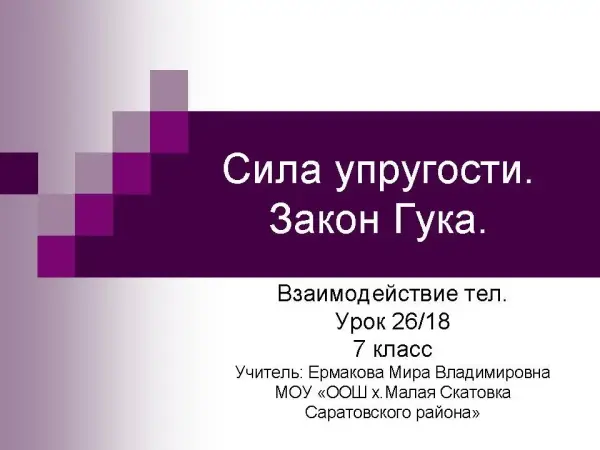 Задачи урока: познакомить учащихся с природой силы упругости, дать представление о видах деформации, сформулировать закон Гука.