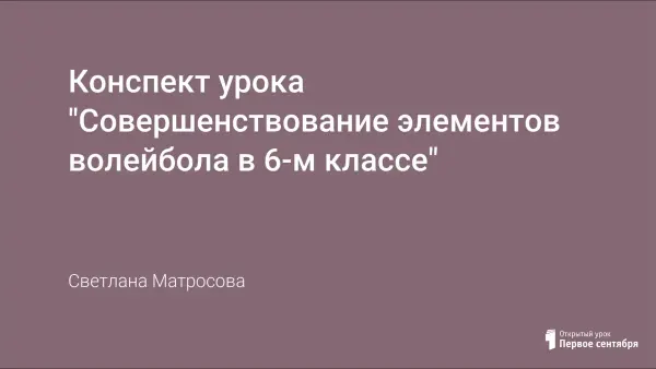 Подготовительная часть урока: построение, сообщение задач урока, разминка для рук, бег. Основная часть урока: передача мяча с верху двумя руками, нижняя прямая подача мяча, контрольный тест по истории и теоретической и практической сведениях. Заключительная часть урока: построение, подведение итогов.