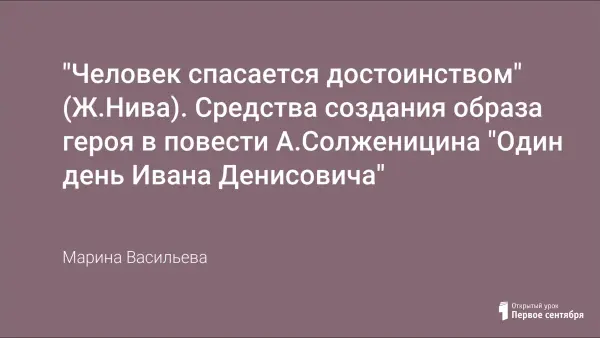На уроке раскрывается сущность образа Ивана Денисовича с помощью основных элементов художественного стиля Солженицына; показана принципиальная новизна героя для русской литературы XX века и важнейшие особенности языковой манеры писателя.