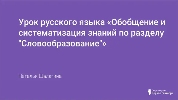 На уроке систематизируются знания учащихся по разделу. Используются разнообразные виды работ: речевая разминка, аутотренинг, карточки, лексическая работа, образование новых слов, игры, разбор по составу, творческая работа - загадки-складки для заполнения кроссворда. Урок развивает образное логическое мышление, речевой слух и языковую память.