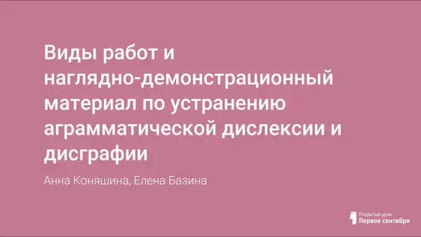 Виды работ и наглядно-демонстрационный материал по устранению аграмматической дислексии и дисграфии