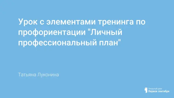 Разработка урока является составляющей частью программы "Успешная карьера" для учащихся 11-х классов. Урок содержит элементы социально-психологического тренинга: диагностический материал "Сила мотивации", тренинговые упражнения "Аукцион профессий", "Мои жизненные приоритеты", "Я - копирайтер".
