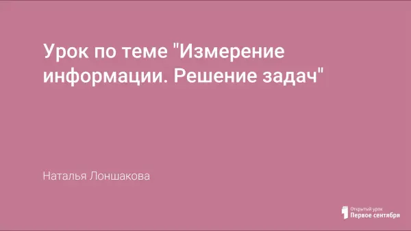 Данный урок является очередным в системе уроков по теме "Измерение информации". Решения задач по данной теме развивают навыки реализации теоретических знаний в практической деятельности, расширяют кругозор и развивают логическое мышление учащихся в области информатики.